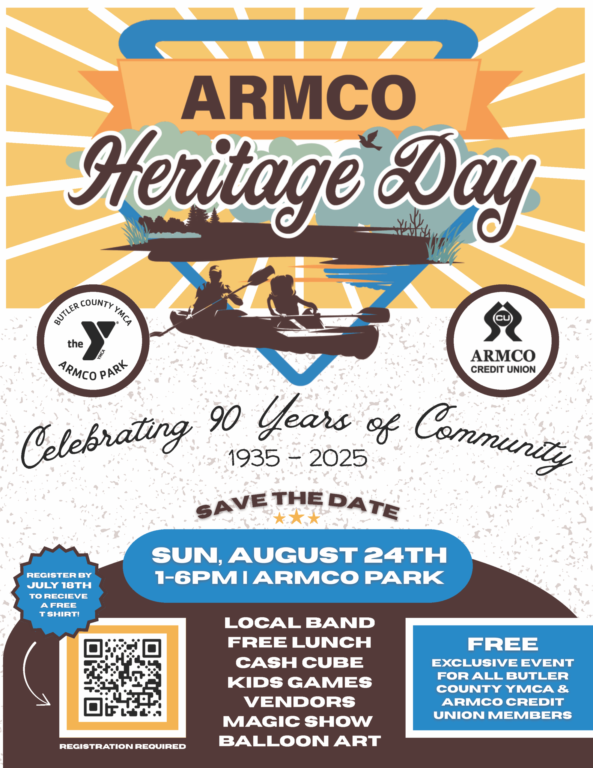 The Butler County Family YMCA and ARMCO Credit Union are hosting Heritage Day on Sunday, August 24 from 1:00 PM to 6:00 PM. The YMCA is asking for volunteers to help make the day a success.